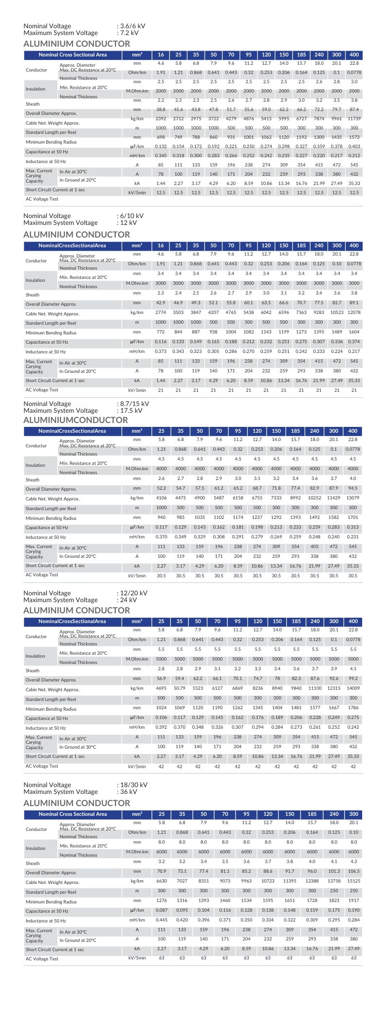 3.6/6 kV (7.2kV) 12/20 kV (24 kV)