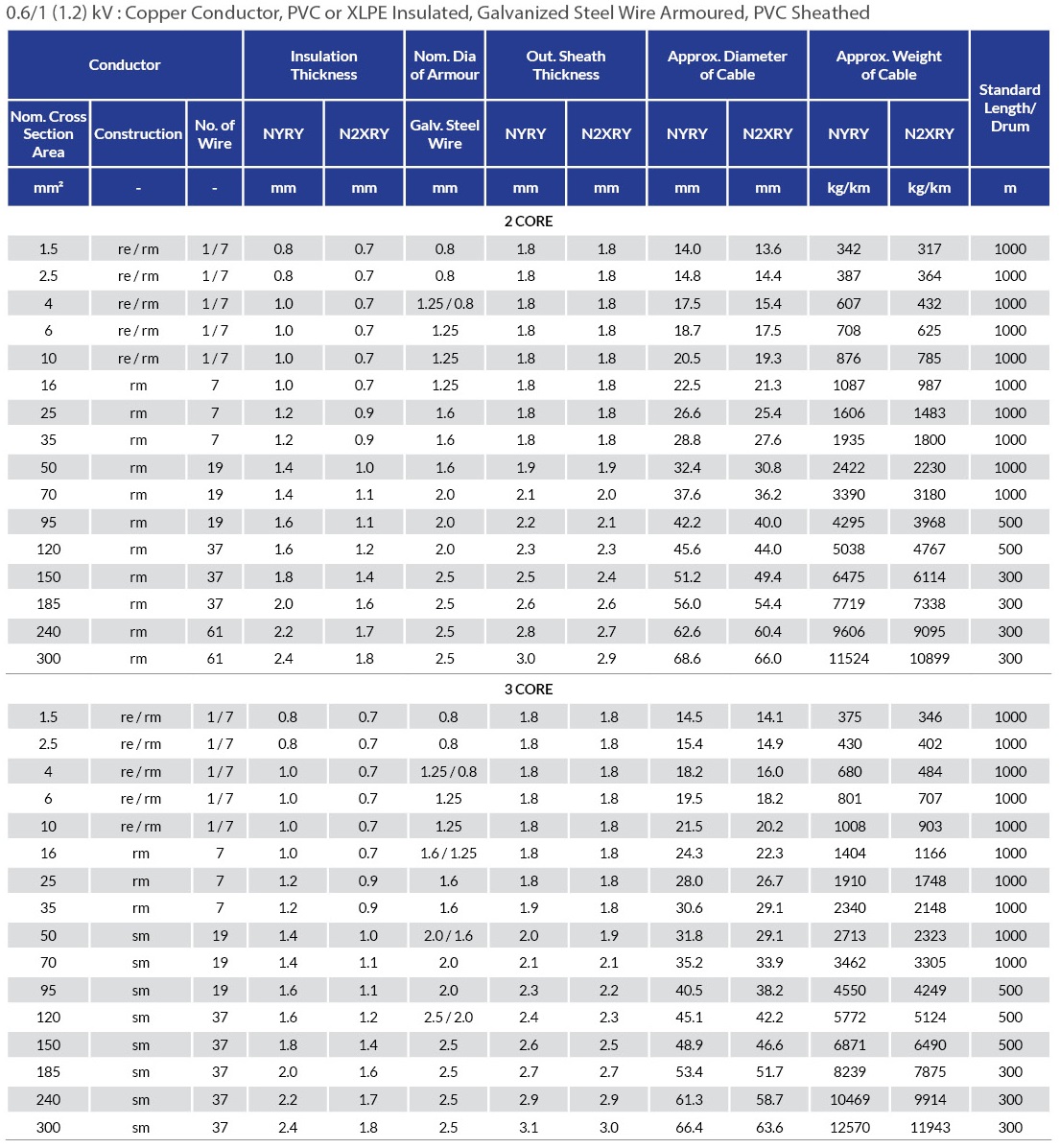 2. Insulation : Extruded PVC or XLPE