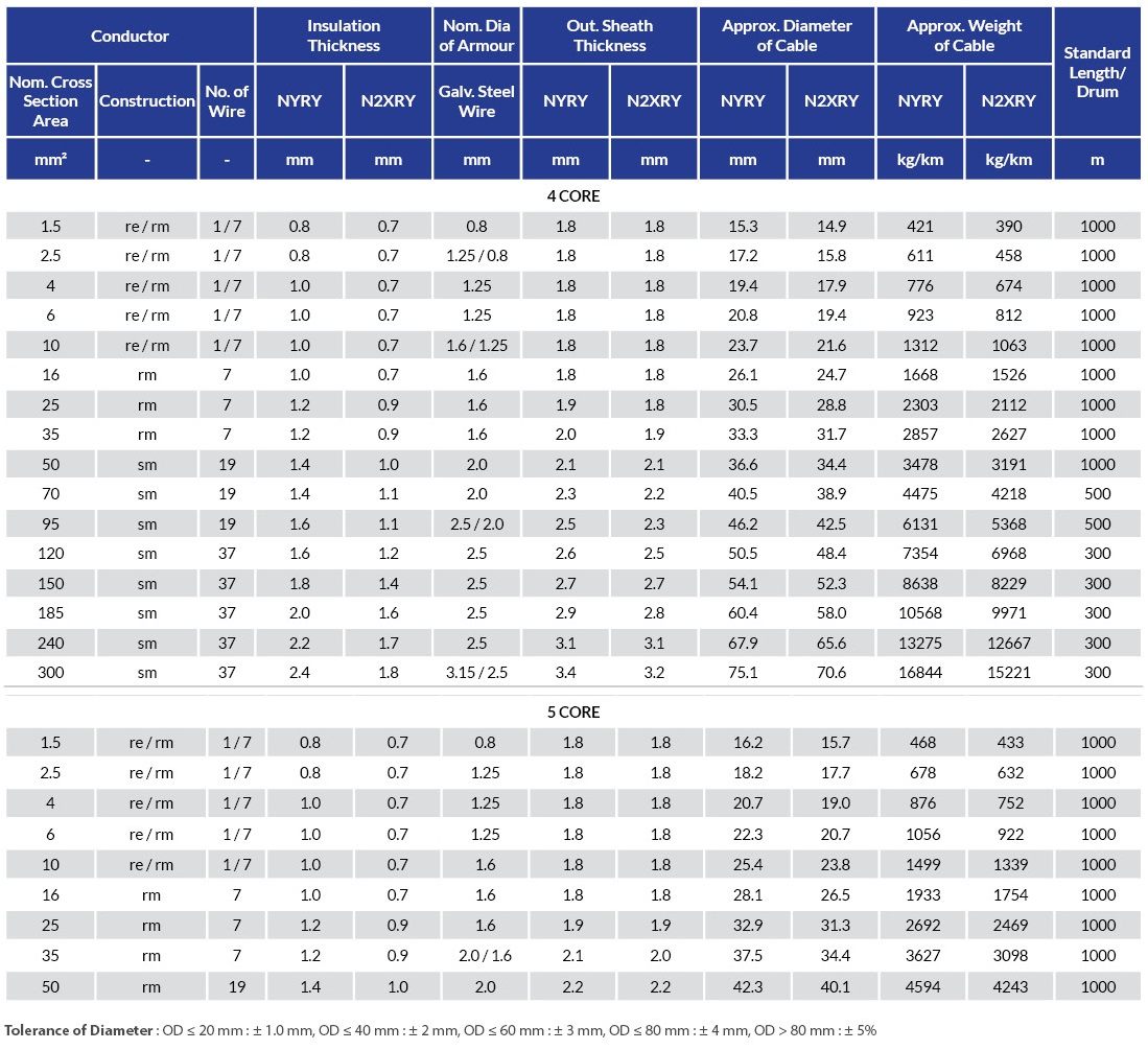 Rated Voltage : 0.6/1 (1.2) kV