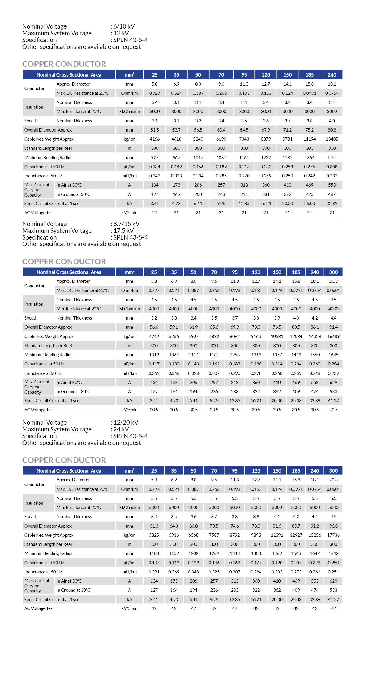 | Insulation | : Extruded Crosslink Polyethylene (XLPE) |