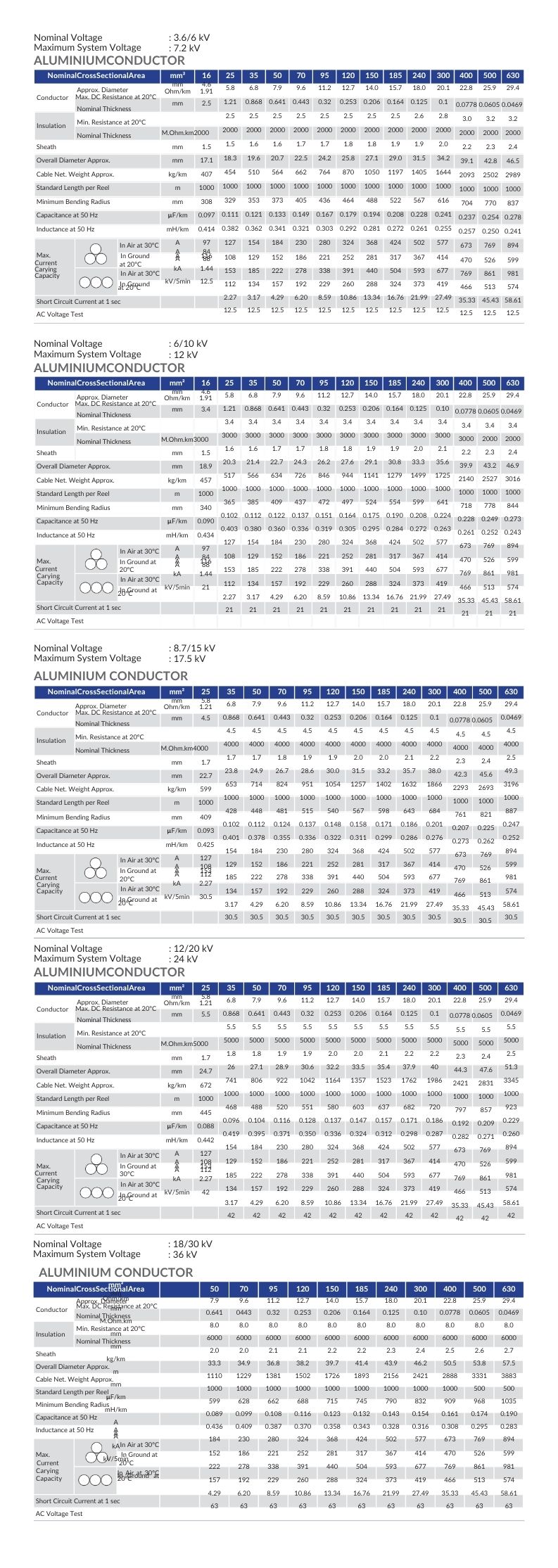 3.6/6 kV (7,2 kV) 12/20 kV (24kV)