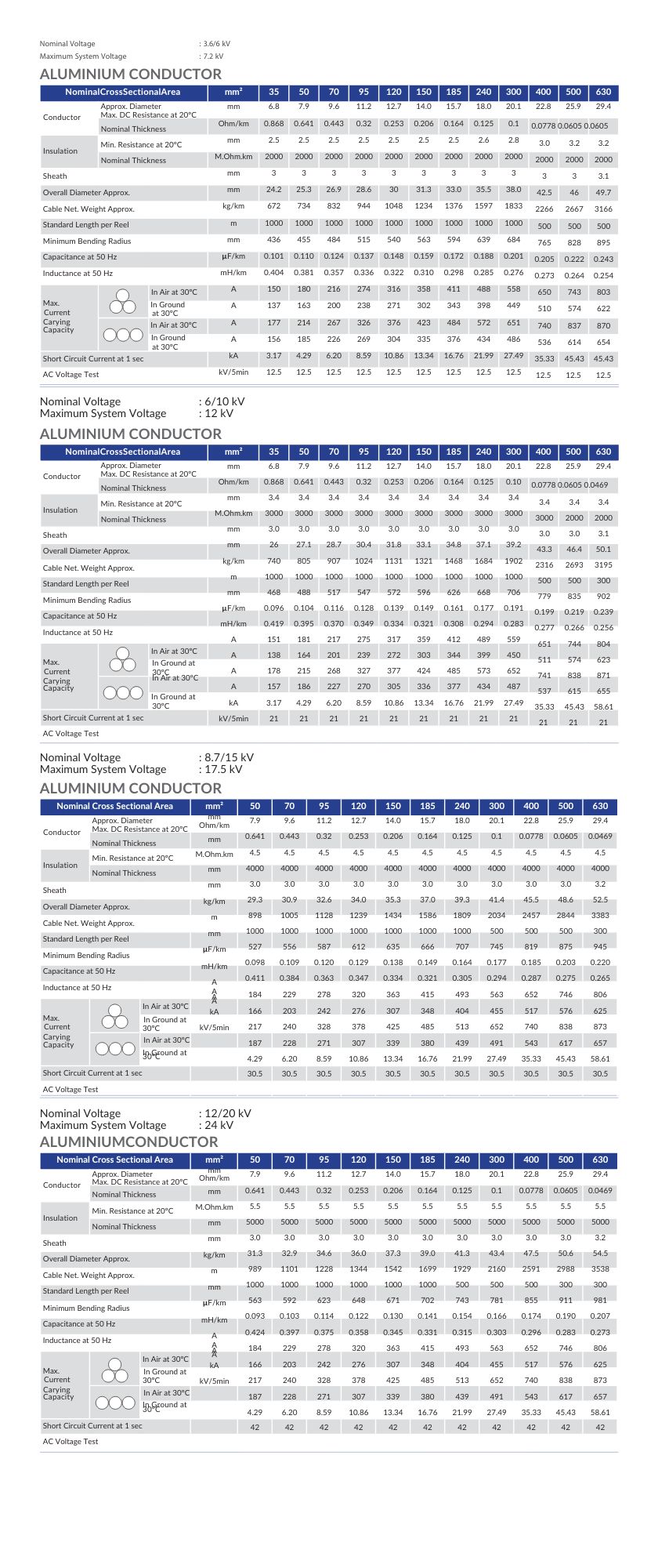 3.6/6 kV (7,2 kV) 12/20 kV (24kV)