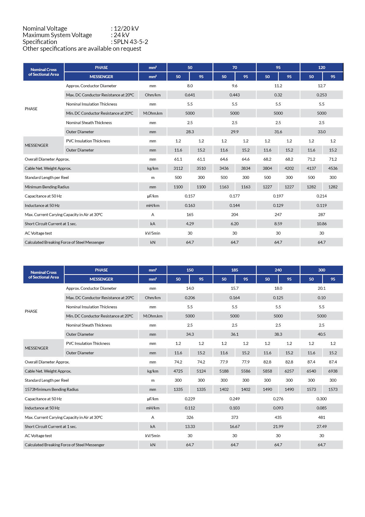 | Insulation | : Extruded Crosslink Polyethylene (XLPE) |