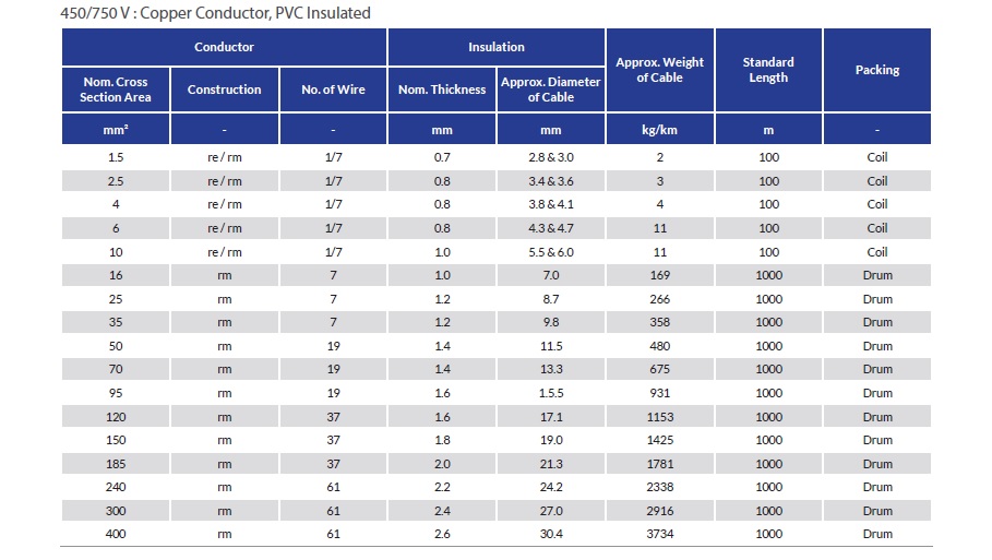 Applicable Standard : Rated Voltage : 450/750 Volt