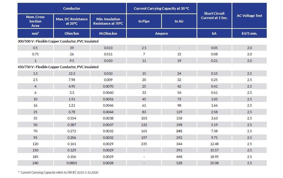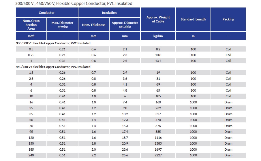 Applicable Standard : Rated Voltage: 450/750 Volt