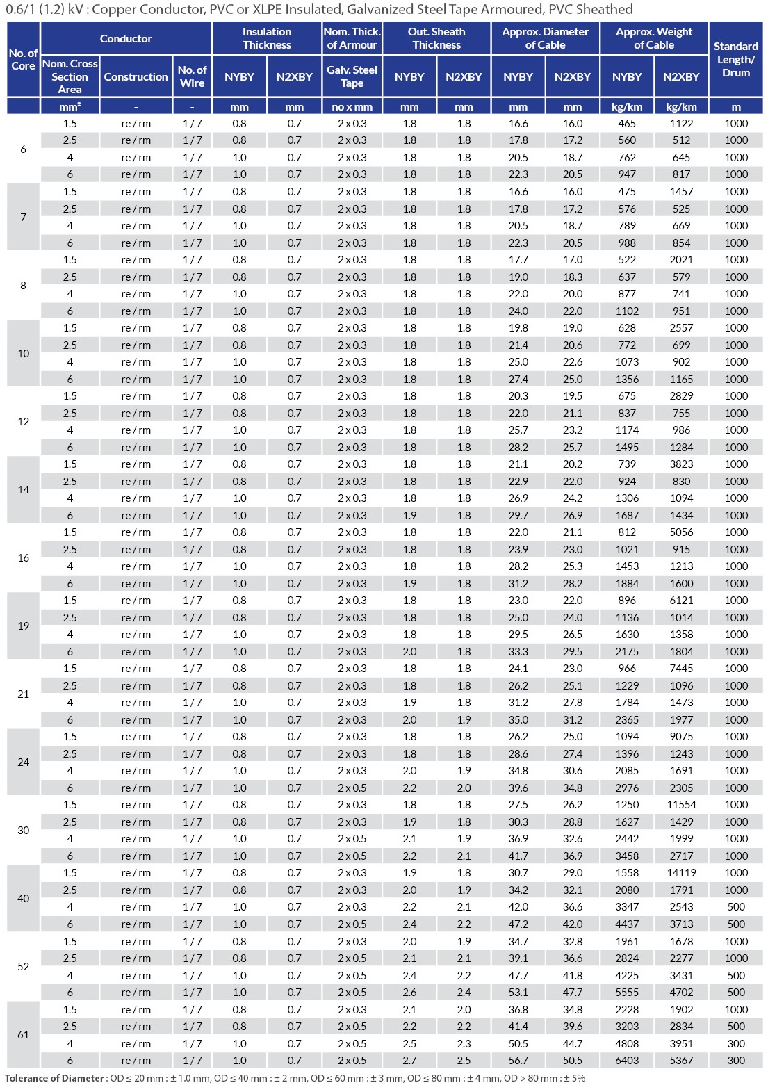 Control cable for indoor and outdoor installations and is planted directly in ground, preferably used where considerable mechanical stress must be envisaged