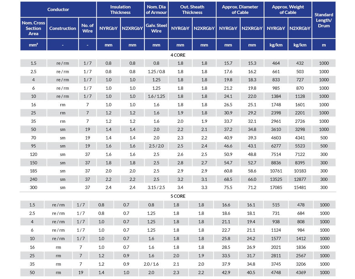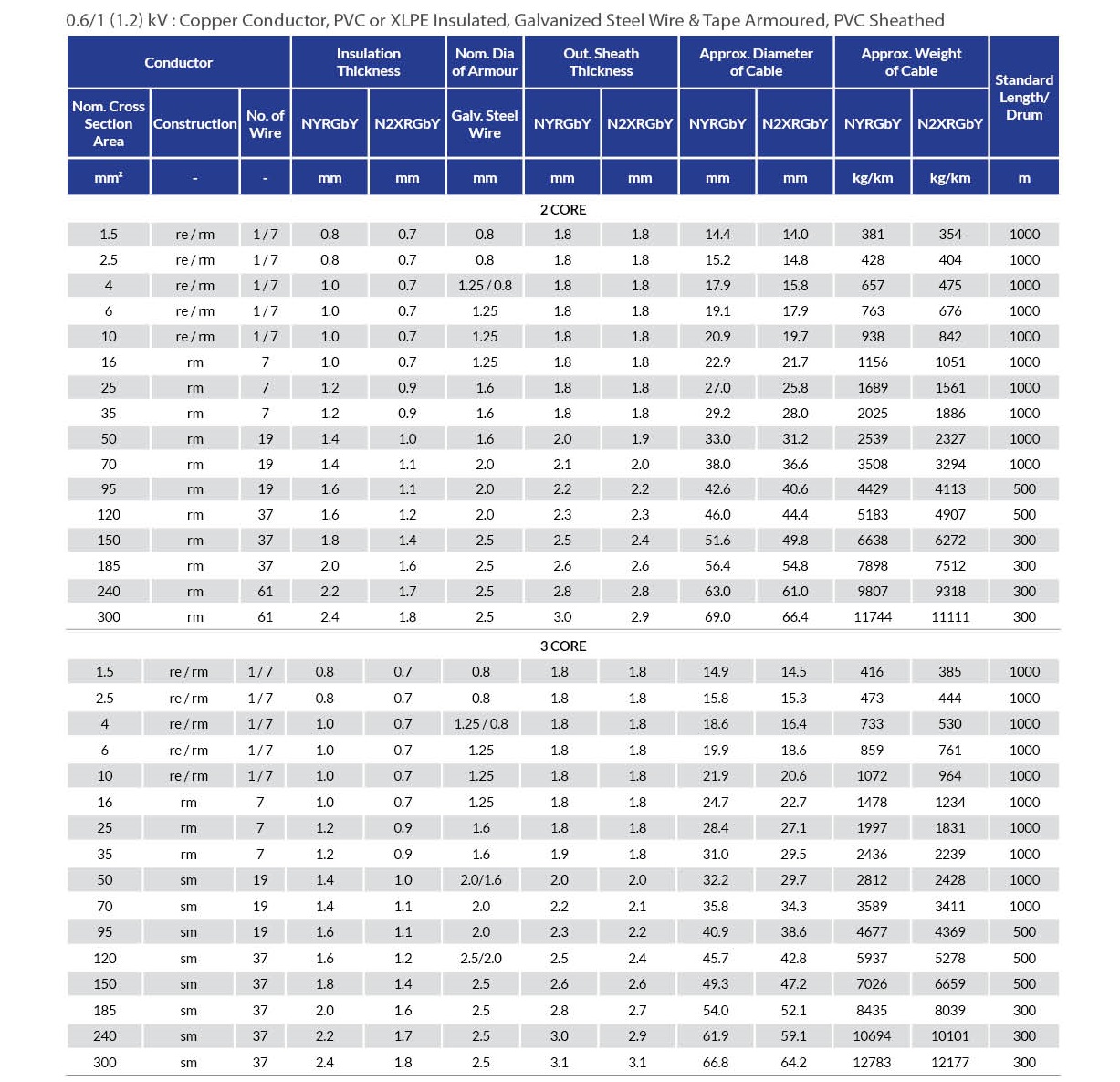 Symbol : NYRGbY or CU/PVC/SWA/PVC , N2XRGbY (CU/XLPE/SWA/PVC)
